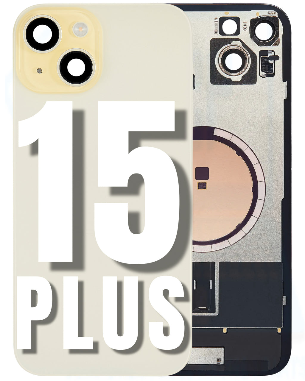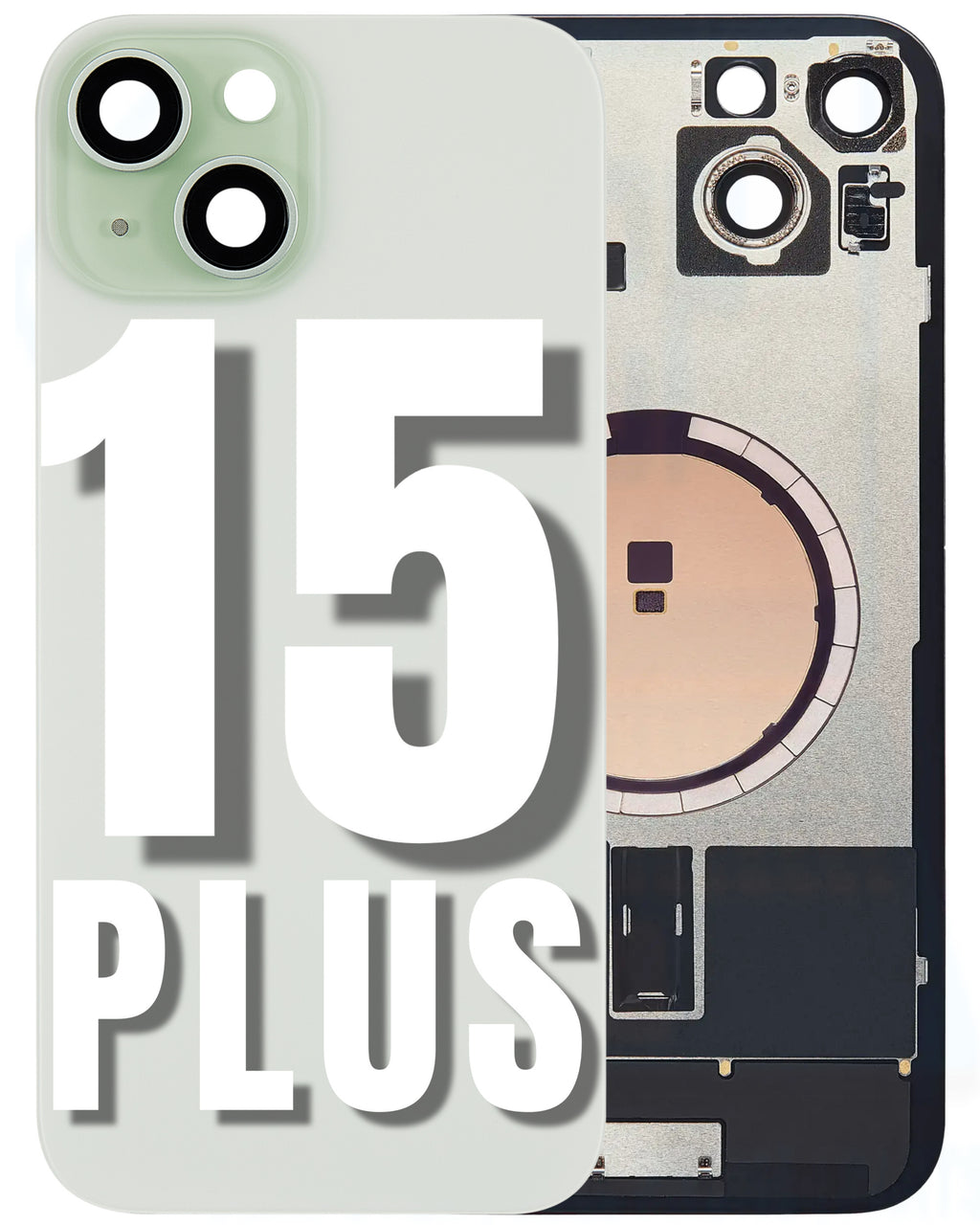 For iPhone 15 Plus Back Glass Replacement with Pre-Installed MagSafe Magnet Steel Plate (All Colors)